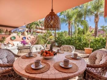 Nestled in the exclusive Las Salinas community in Estepona East, this stunning ground-floor apartment is a true haven of comfort and style. Designed for those who appreciate both relaxation and convenience, it offers a seamless blend of modern elegance and cozy charm.