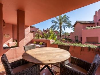 In addition to its privileged location, the apartment boasts a wide range of amenities and features such as air conditioning, a fully fitted kitchen, marble floors, a gym, 24-hour security service, a private terrace, underfloor heating throughout the property, wifi internet, and covered terrace.