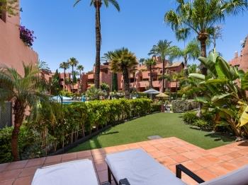 Cet appartement en rez-de-chaussée est situé dans le complexe très recherché Torre Bermeja à Estepona Est, Malaga. Il offre deux chambres spacieuses et deux salles de bains modernes, avec une surface construite généreuse de 142 m² complétée par une terrasse privée de 35 m². Le bien est présenté en excellent état, entièrement meublé, et dispose de la climatisation, du double vitrage et de placards intégrés, garantissant un cadre de vie confortable et élégant.